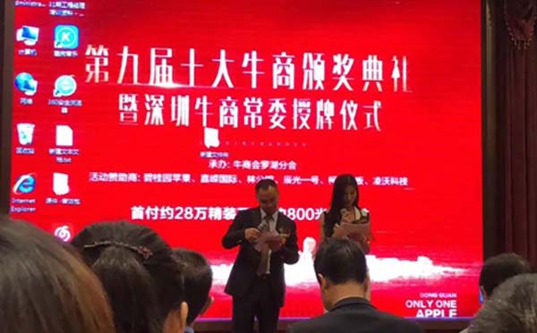 深圳市龍崗牛商會執(zhí)行會長,深圳市通發(fā)激光設備有限公司副董事長王小峰從深圳上千企業(yè)家中脫穎而出,同其他九位優(yōu)秀企業(yè)家共同獲得了第九屆深圳十大牛商的殊榮。