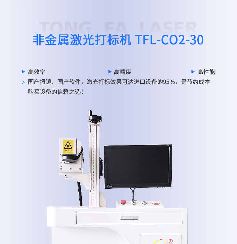通發(fā)激光研發(fā)TFL-CO2-30非金屬激光打標機,是皮革激光打標、木材激光打標、石材激光雕刻、硅膠激光鐳雕等非金屬專用的二氧化碳激光鐳雕設(shè)備,本二氧化碳激光鐳雕機配置進口射頻激光器等高端器件,性能穩(wěn)定!!!