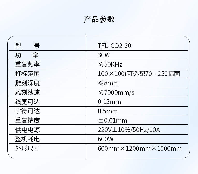 2、應(yīng)用于醫(yī)藥包裝激光打標、建筑石材激光打標、飲料包裝在線價格打標日期、橡膠制品激光打標、非金屬工藝禮品激光打標、皮革切割打標加工等行業(yè)。