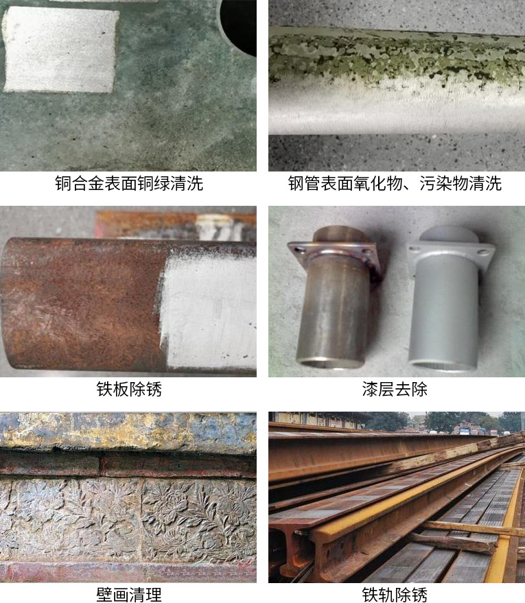 激光清洗具有無(wú)研磨、非接觸特點(diǎn),不但可以用來(lái)清洗有機(jī)的污染物,也可以用來(lái)清洗無(wú)機(jī)物,包括金屬的銹蝕、金屬微粒、灰塵等,應(yīng)用功效包括:除銹、脫漆、去油污、文物修復(fù)、除膠、去涂層、去鍍層。適用于銹層、漆層較厚,油污較深的情況下清潔,以及表面粗糙化、焊縫清潔等工藝環(huán)節(jié),效率極高。應(yīng)用行業(yè):航空、船舶、文物保護(hù)、汽車(chē)周邊、食品行業(yè)、軌道、橡膠模具、其他。