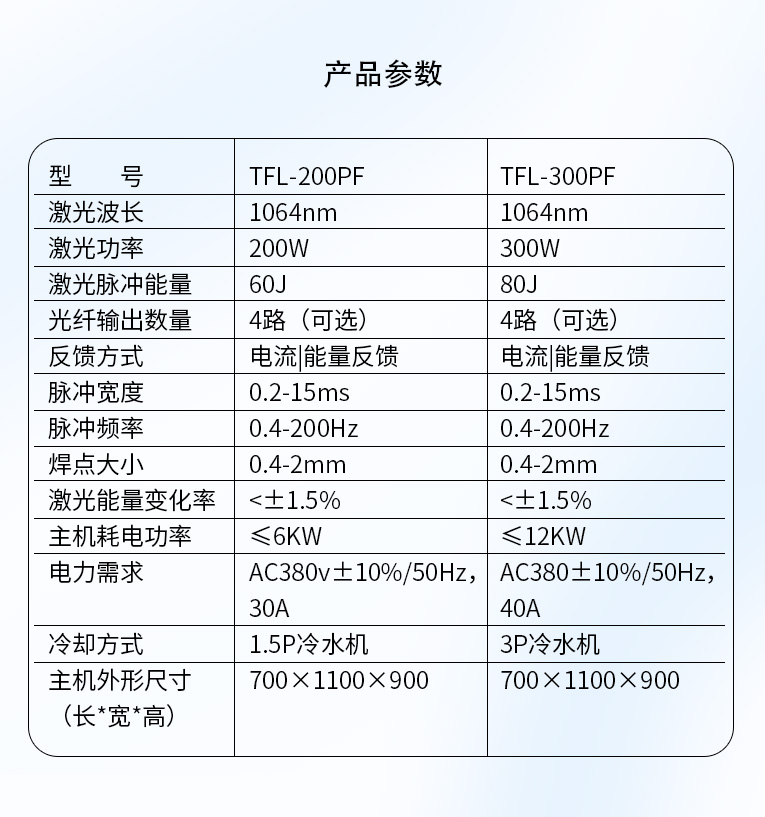 通發(fā)激光TFL-300PF光纖激光焊接機,精密能量反饋控制模式,穩(wěn)定性<3%,經(jīng)過光纖優(yōu)化獲得卓越的光束質(zhì)量,適合1mm以下精密手機五金激光焊接、廚衛(wèi)家電五金不銹鋼精密激光焊接加工。